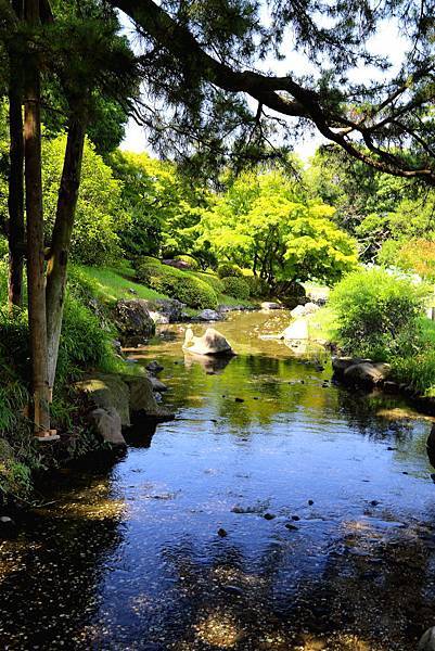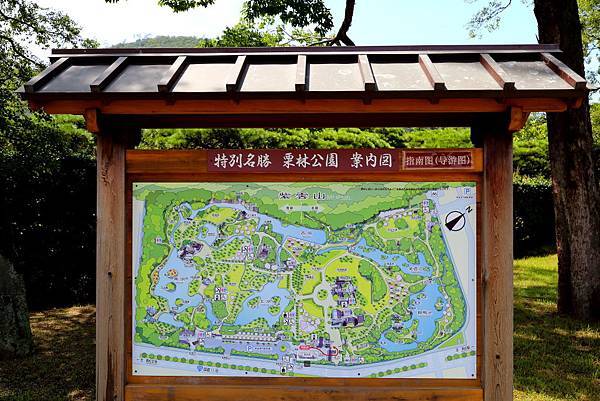 我們從栗林公園的東門入口處買票入園,園區整體可以區分南庭和北庭,印象中網友們均言較優的景點多分佈於南庭,但心想以我們家的腳程腿力也把北庭走逛一圈,應該沒有太大問題,我就領著頭先往北庭的方向前進囉! (以下圖來說北庭在右手邊,南庭在左手邊 )