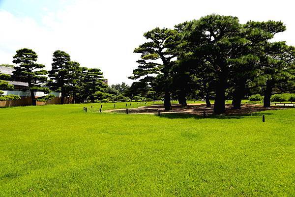 南庭景觀的豐富度果然是北庭的好幾倍,小橋、流水、綠草原、日式小屋等,讓人的視野多了許多刺激,而當看到有船划行於其間,又更讓人興奮了,當下覺得這個畫面好美,好像身在不同的年代,想想我們也有板橋林家花園啊!一樣有許多古色古香的懷舊建築,但回想起來似乎建築物多過於綠色印象。