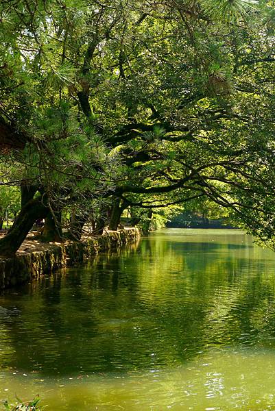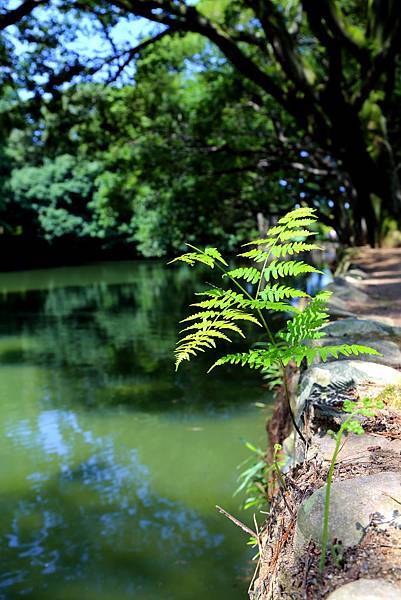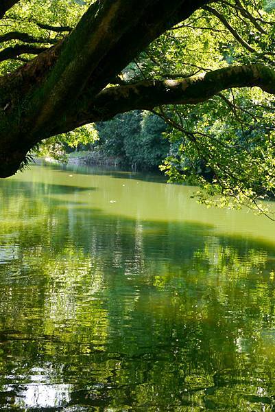 往前遠遠看到一區碧綠色的水景,看著此區對照著地圖,這名稱之為西湖,雖沒有"湖"在心中想像的寬廣,但這片綠讓人覺得舒適,且剛入眼的一瞬間,我突然有種好像在台南台江四草的綠色隧道的感覺,雖然沒有兩岸夾道的綠樹,但在這裡卻忍不住的不停地按下快門。