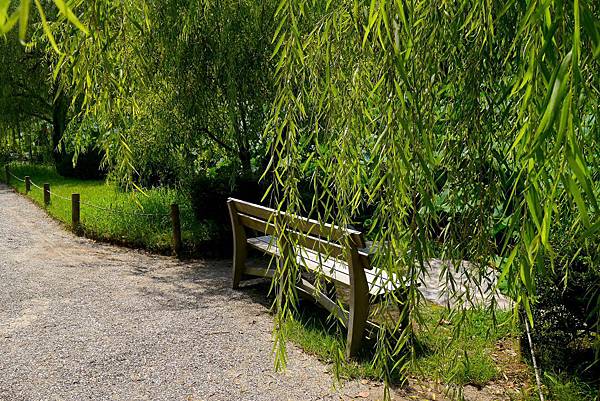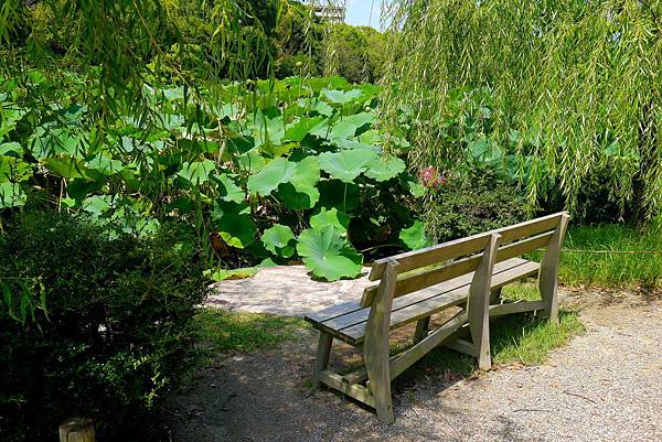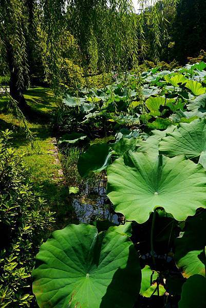 走逛到芙蓉沼此區,高挺挺的荷花在其中,荷花葉相當茂密,一旁的柳樹也在盛夏低