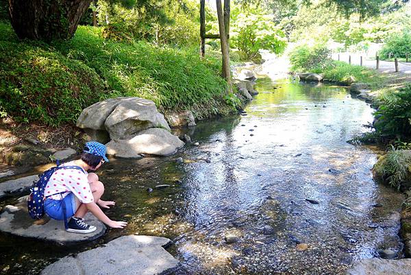 走的大約一半的北庭之後,果然景色顯得平庸了些,我打算放棄尚未走完的另一半,開始往南庭的方向前進,經過這潺緩池,Jasmine已經按耐不住想好好親水一番。