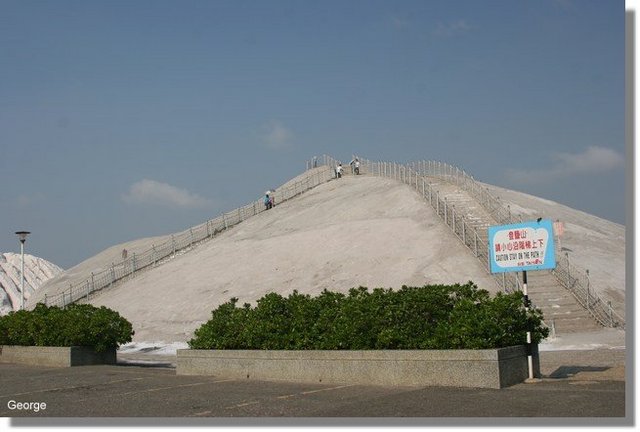 鹽山最著名地便是這兩座堆積成山如雪般的鹽山,爬上一座園方已經規劃