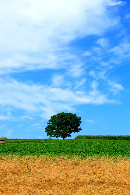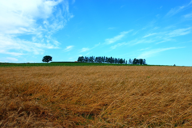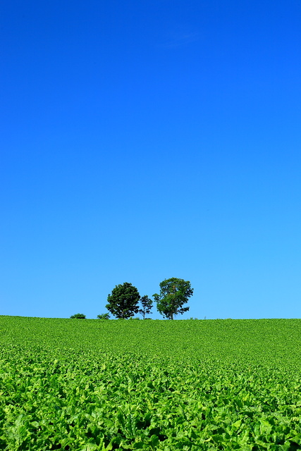 起伏伏的田陌中,這些樹很有畫龍點睛的效果,讓平淡中多些驚喜,日本